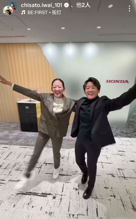 岩井千怜が自身のインスタグラムを更新。所属するHONDAの社名が掲げられたビジネスビルのフロアで、明愛と一緒にダンスを披露する動画を投稿した。 【動画】「笑顔全開のダンス」を披露する岩井ツインズ 「踊ってみたシリーズC」「Dance series part4」と日本語と英語で記すと、日本の6人組ボーイズグループ「BE:FIRST」が昨年12月にリリースした「街灯」の振り付けを楽しそうに完コピしてみせた。この投稿と同じタイミングで...