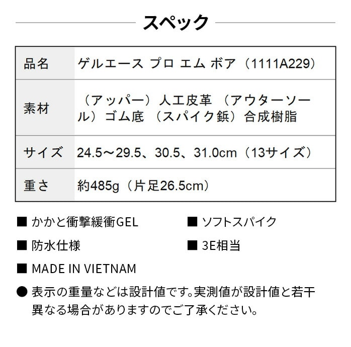 アシックス ゲルエース プロ エム ボア ゴルフシューズ メンズ スパイク ダイヤル式 防水 1111A229