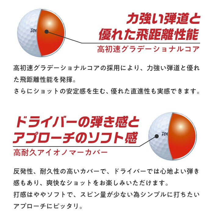 優れた飛距離性能を発揮するディスタンスタイプのボール!