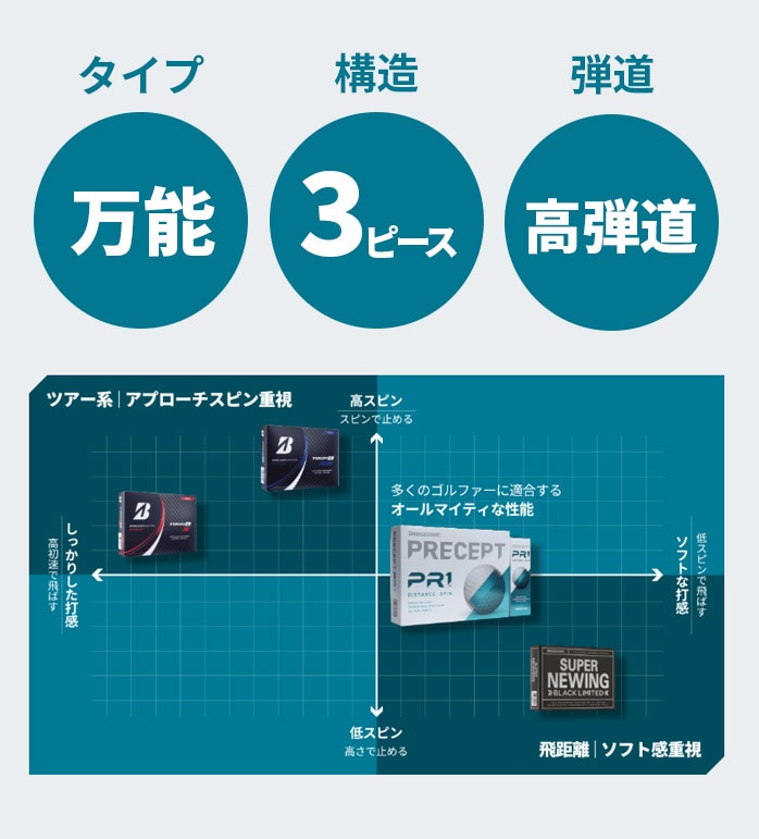 プリセプト PRECEPT ゴルフボール PR-1 ZJWX SMU 2025年 1ダース 12球 ブリヂストン