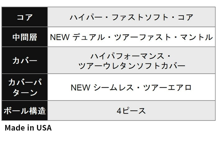 CHROME TOURシリーズのリニューアルにおいて、第一に着手されたのがボールスピードのさらなる向上でした。従来のボールのフィーリングを変えることなく、スピードを求めるために、実に4年もの開発期間を経てマントルの素材を一新。新たなマントル(コアから2層目)には、NEWデュアル・ツアーファスト・マントルという名前が与えられています。従来と比べ、約16%高い弾性率をもったこの新素材が、ばねのように働くことで前作を上回るボールスピードを達成しました。
