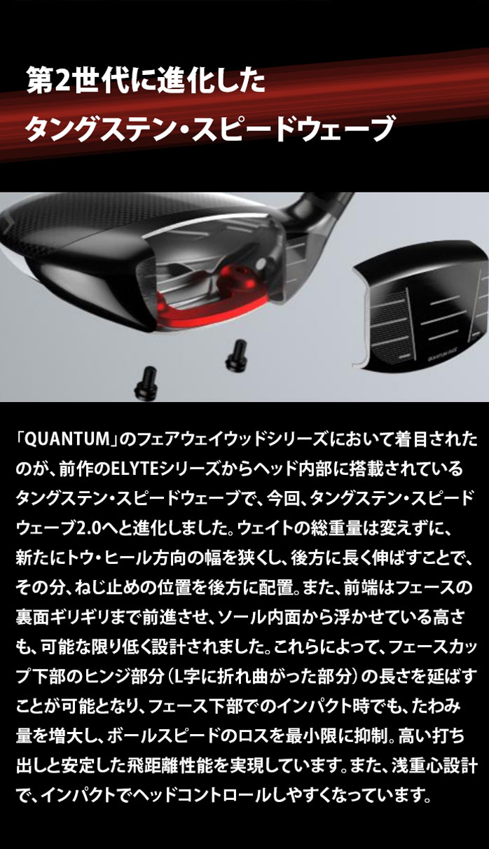 対象商品購入でゴルフパートナースクールスクール入会金無料!ボール初速、操作性、抜けの良さ 幅広い進化で高まった完成度『QUANTUMフェアウェイウッドシリーズ』