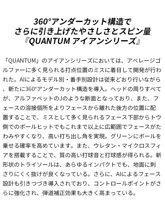 対象商品購入でゴルフパートナースクールスクール入会金無料!360°アンダーカット構造でさらに引き上げたやさしさとスピン量『QUANTUM アイアンシリーズ』