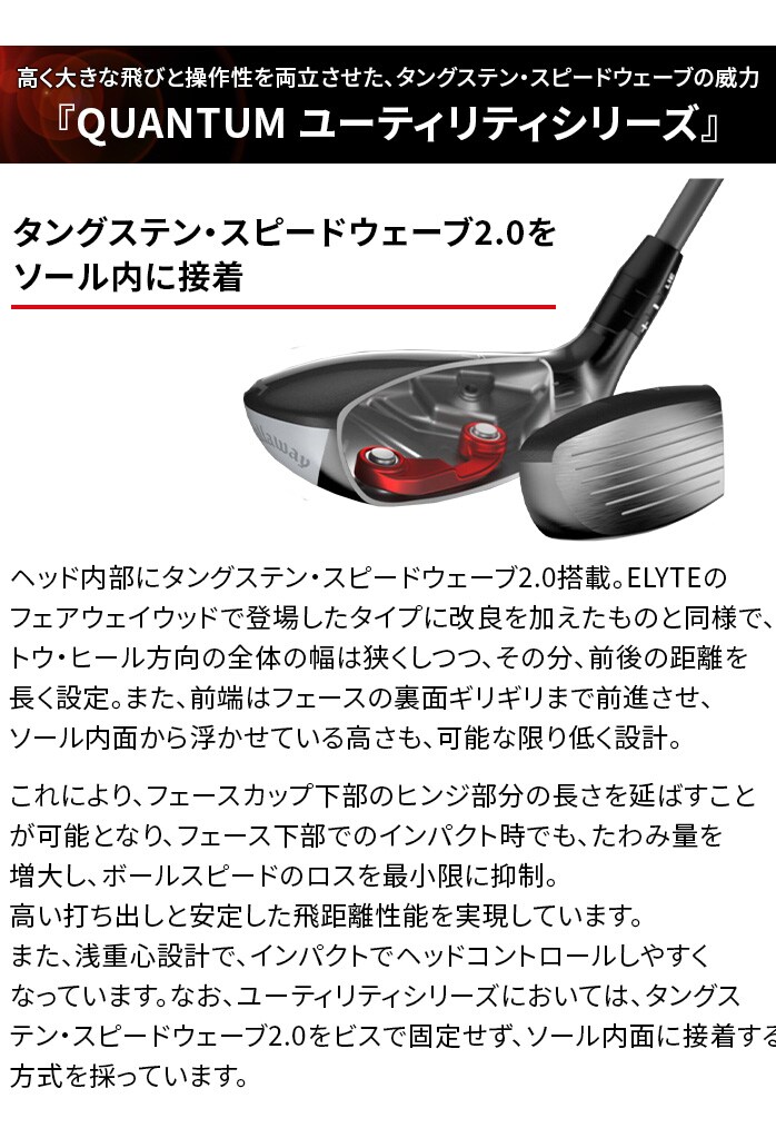 対象商品購入でゴルフパートナースクールスクール入会金無料!高く大きな飛びと操作性を両立させた、タングステン・スピードウェーブの威力『QUANTUM ユーティリティシリーズ』