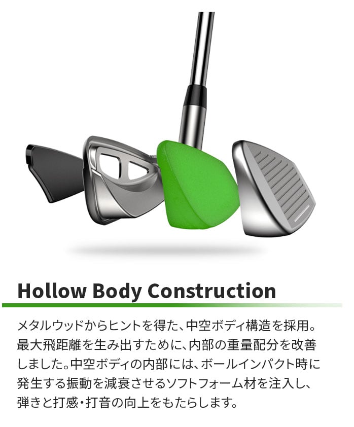 DS-ADAPT MAXアイアンは高い安定性能と高い打出し角が得られる、最先端テクノロジー搭載の中空アイアンです。