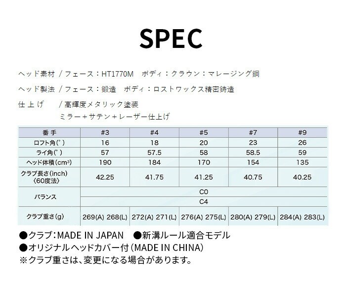 シャフト(フレックス)番手 3W 4W 5W 7W 9W
