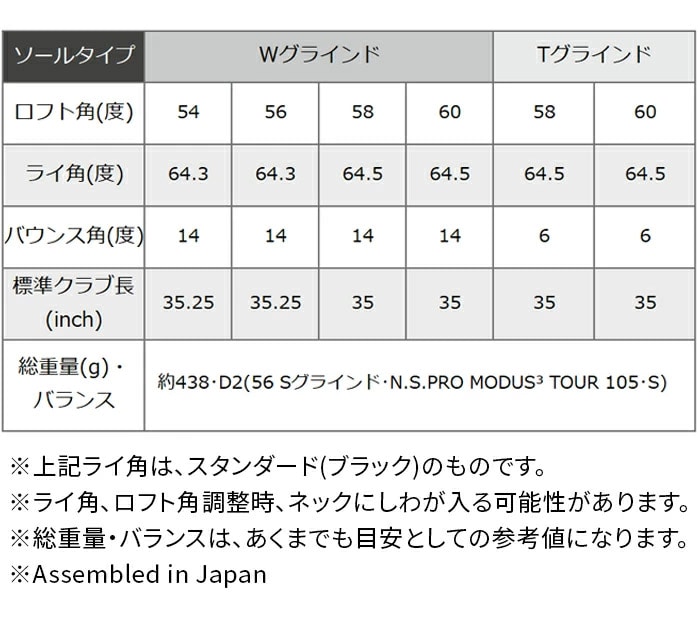 ロフト角(度)/バウンス角(度)