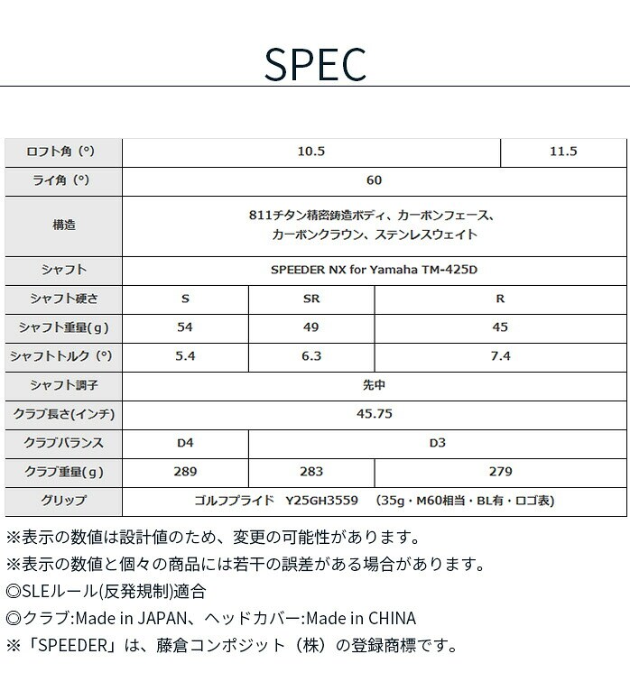 ヤマハ ゴルフ INPRES DRIVESTAR TYPE D ドライバー 2025 SPEEDER NX TM-425D