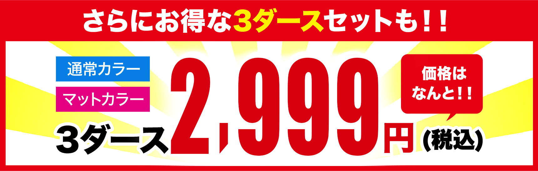 さらにお得な3ダースセットも!!通常カラー、マットカラー 価格はなんと!!3ダース2,980円