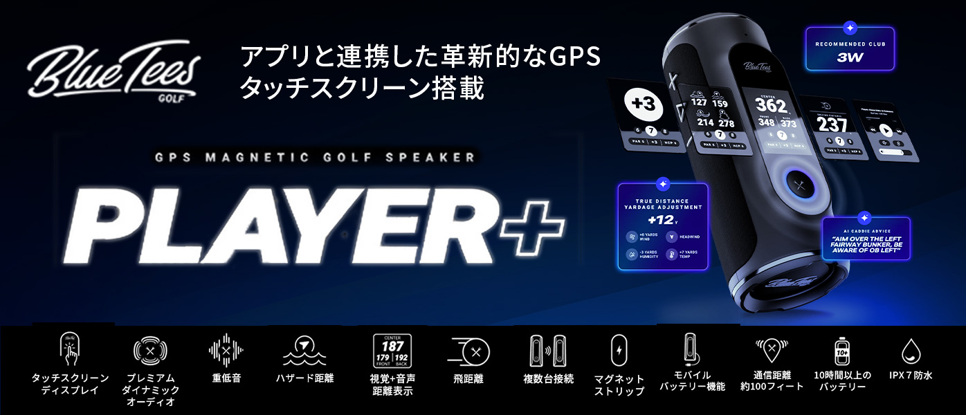 Blue Tees Gameアプリと連携したGPSタッチスクリーン搭載ゴルフスピーカーです。