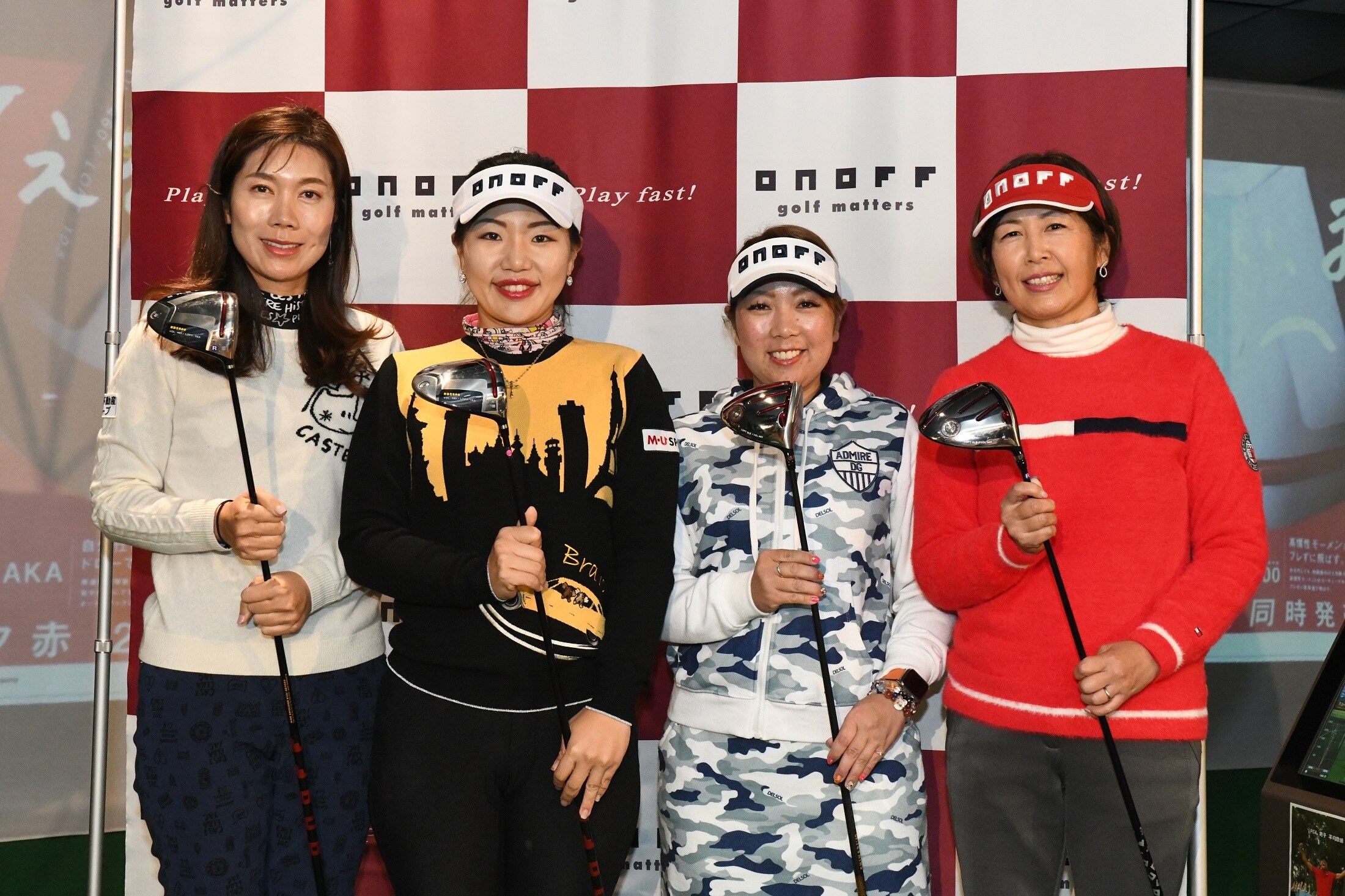 グローブライドの新製品発表会が行われ、オノフの赤シリーズの新製品がお披露目された。この日集まったのは、契約選手の黄アルム(ファン・アルム/32歳 2019賞金ランク16位)、李知姫(イ・チヒ/40歳 2019賞金ランク29位)、大城さつき(30歳 2019賞金ランク48位)のシード選手と、ゴルフ中継の解説でもお馴染みの村口史子(53歳 1999年賞金女王)の4人。3月に発売されるオノフ ドライバー 赤は、『AKA』と『AKA RD5900』の2機種がラインナップされている。