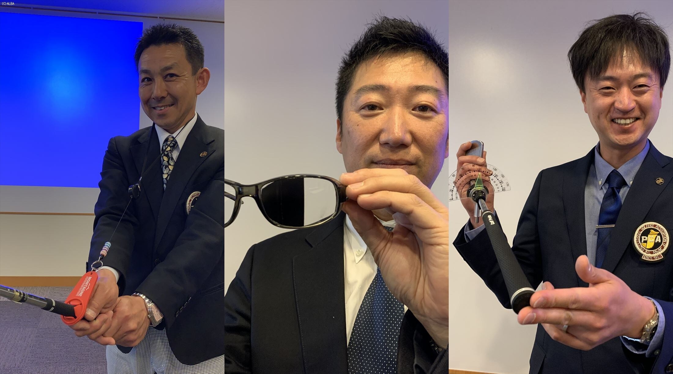 PGAティーチングプロアワードの最終選考に残った坂本博之さん、新熊直樹さん、大山トギさんが考えた練習器具はどれも独創的だ。
