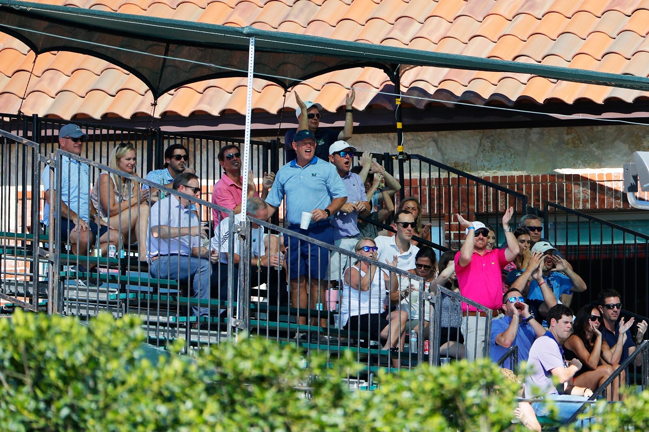 5番ティ後ろのフェンス越しにもファンたちが集まる姿見かけられ、ふだんなら雑音を嫌う選手たちも今週ばかりは声援を多いに楽しんでいる。(文・武川玲子=米国在住)