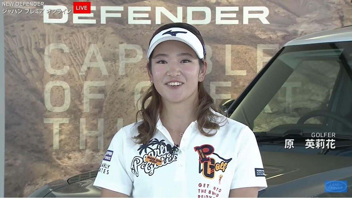 今年5月からジャガー・ランドローバー・ジャパン株式会社の「ランドローバー」でブランド・アンバサダーを務める原英莉花が、同ブランドの『新型ディフェンダー』のジャパンプレミアYouTubeライブに出演。日本上陸を果たした話題車種のお披露目会を盛り上げた。