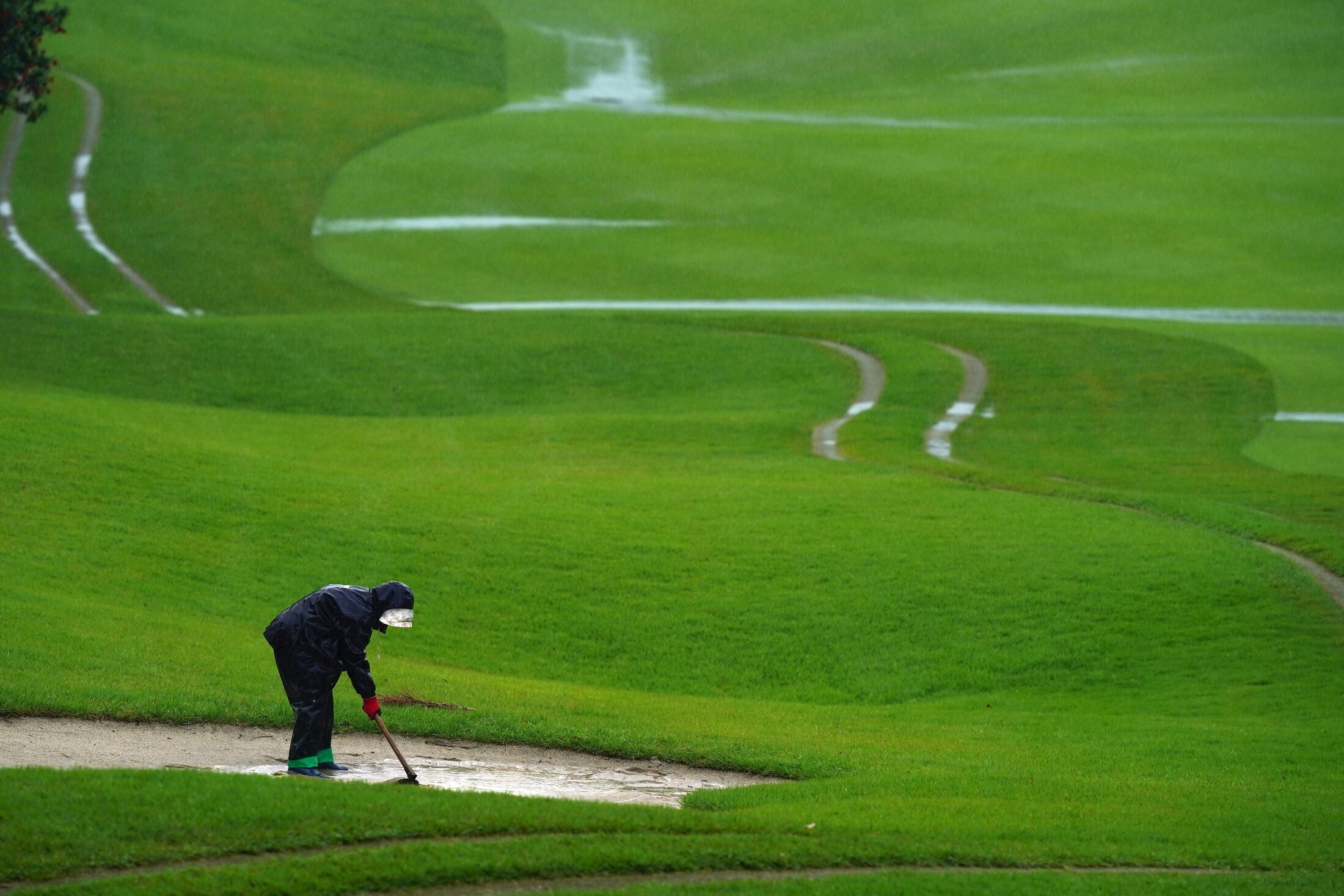 午前7時に第1組がスタート予定だったが、8時スタートに変更。降雨によるコースコンディション不良のためとしている。