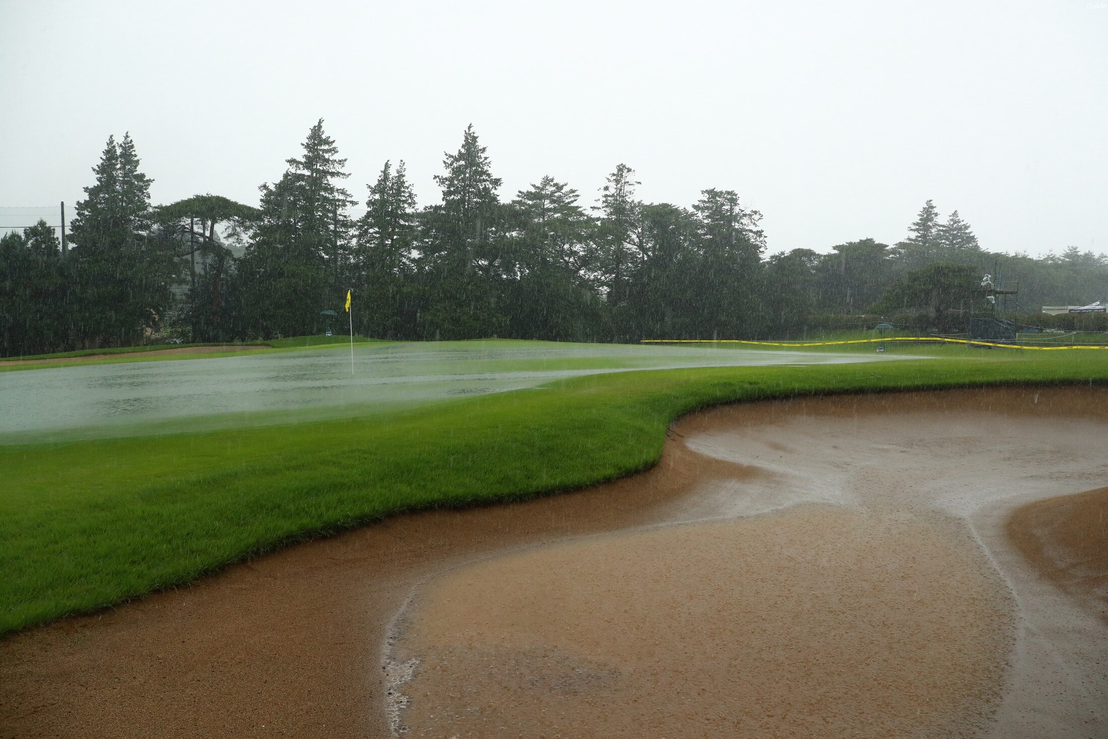 現在は、午前9時頃を目安に1番ホールから第1組の中西直人、木下稜介、小鯛竜也がスタートできるよう調整が進められている。ただ、この後の天候次第では、さらなる遅れが生じるケースも考えられる。