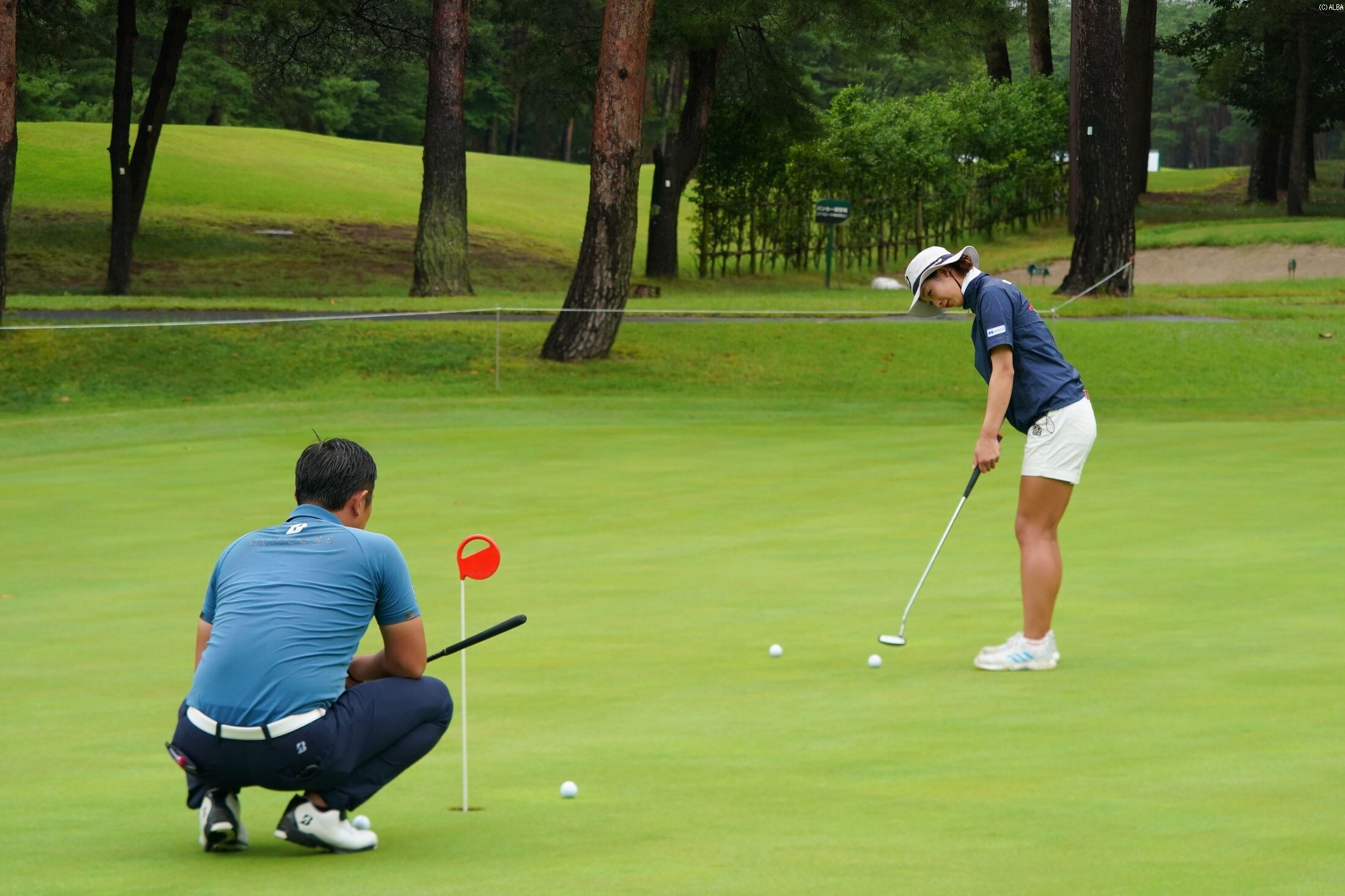 堀川未来夢は「イベントなどでは会っていましたが、これまではそこまで接点がなかった」という松田鈴英のパッティングに30分以上みっちり付き合った。何を話していたか聞いてみると、「いろいろなことを話したので、何を話したか凝縮して話すのは難しいです」としながらも、「アドバイスというよりは、パッティングの基本というか考え方だったりを短時間でパッと言った感じですかね。打ち方とかではなくマインド面だったり、これからパッティングが良くなるようにと声をかけました」と話した。一方の松田は「すごく難しかったのですぐにはできないと思いますが、とてもためになりました」と感謝していた。