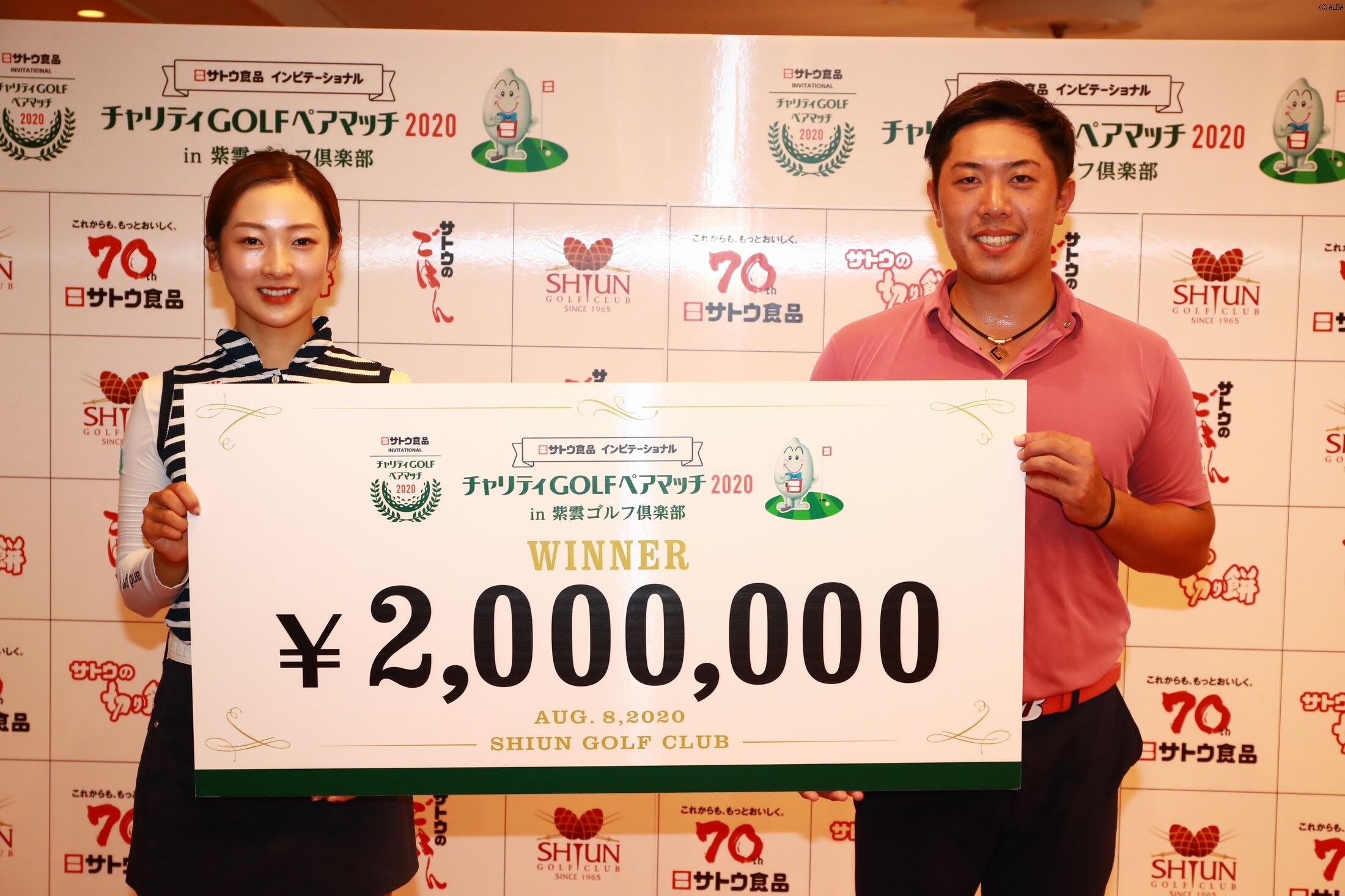 新潟県にある紫雲ゴルフ倶楽部で行われた男女で組んだ12組のペアが優勝を争う「サトウ食品 インビテーショナル チャリティゴルフ ペアマッチ」。男子プロと女子プロが協力し合いながらスコアを伸ばすという異色の戦いを制したのはトータル7アンダーまで堀川未来夢と松田鈴英ペアだった。