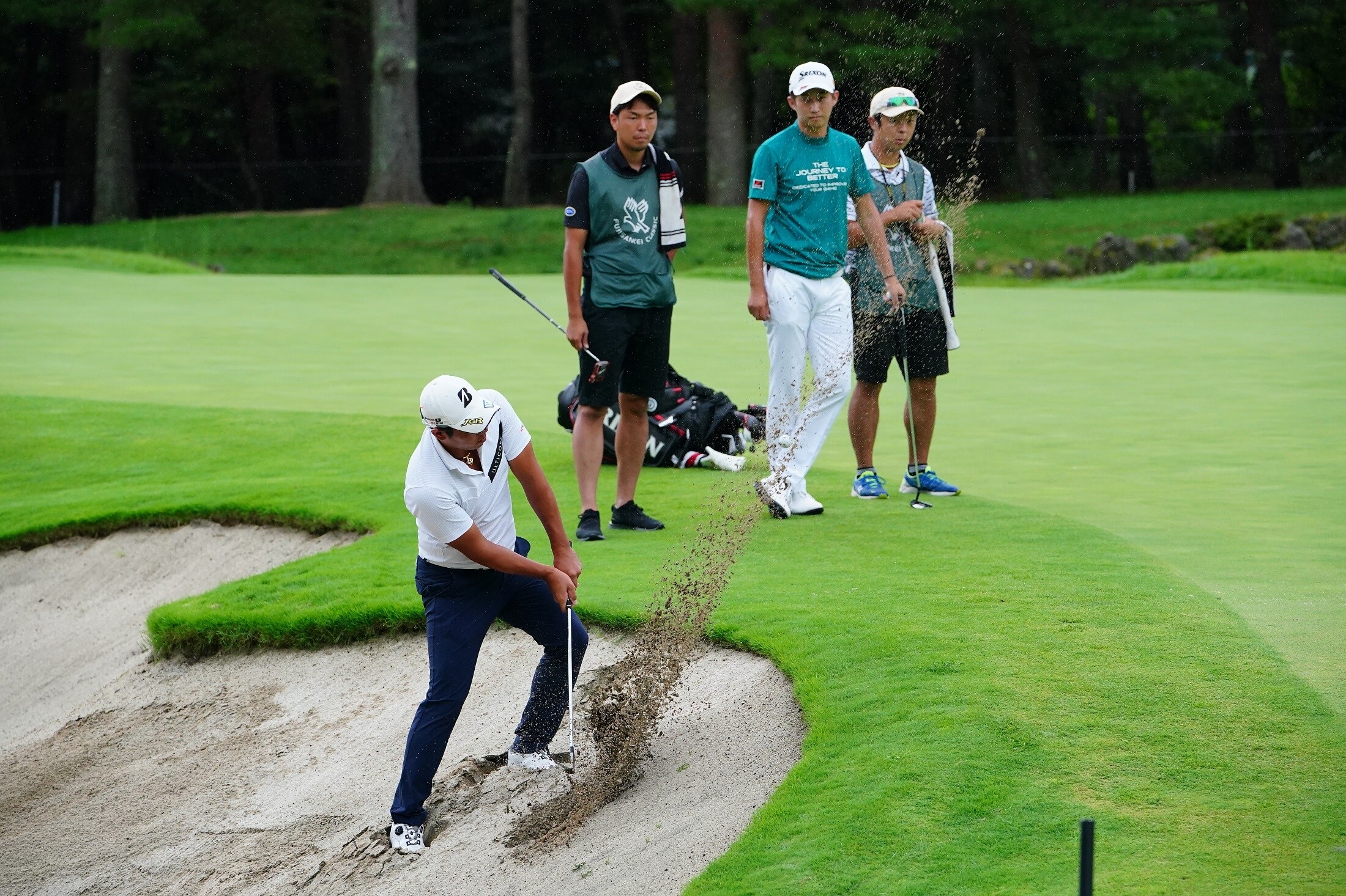 最終18番パー4(465ヤード)の繰り返しで行われるプレーオフ。ピンポジションは2ホール終了後に切り替えられる。グリーン右に深いバンカーが控える打ち上げのホールで、ピンはグリーン右奥。「相手は星野陸也。雨の降る中でピンを狙えない状態で、彼の高い球と僕の低い球ではかなりキツいなと思っていた。2ホールを耐えれば、チャンスがあるかなと思った」と、長丁場は覚悟していた。