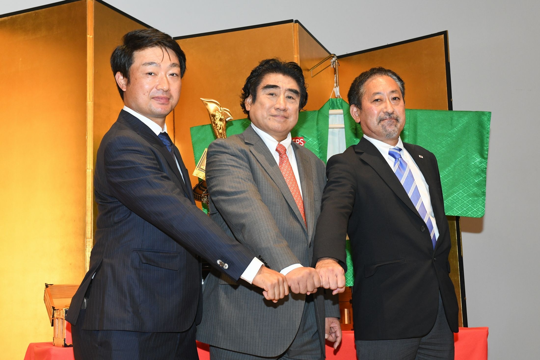 国内男子ツアーで10月に行われるエキシビショントーナメント2試合の記者発表が8日(木)に行われ、主催のISPS(国際スポーツ振興協会)の半田晴久会長、共催のJGTO(日本ゴルフツアー機構)の浦山豊競技部統括部長、選手代表として市原弘大の3人が出席した。