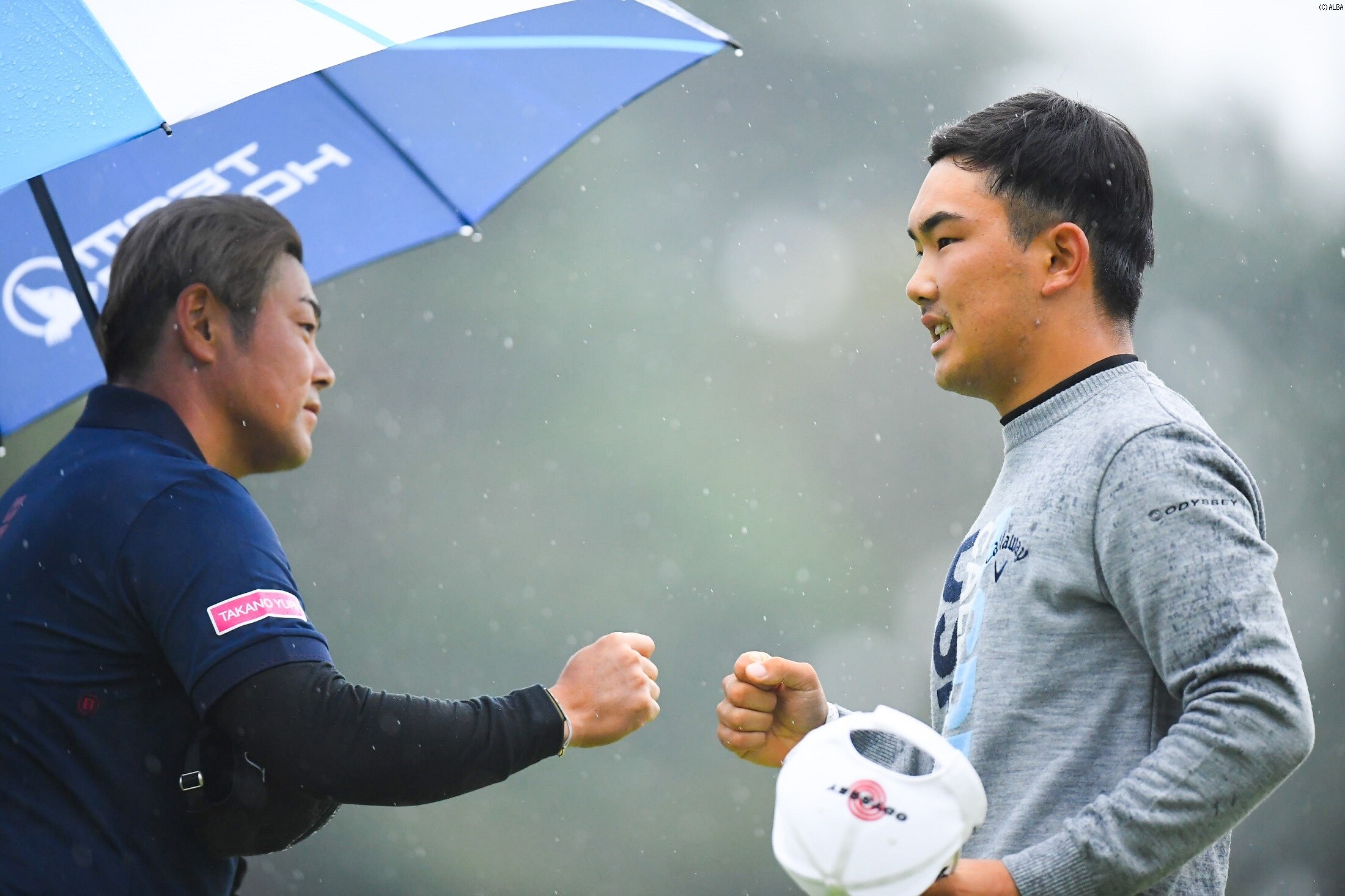 谷原と1打差で迎えた最終18番パー5。ドライバーのティショットが再び右に曲がり、隣のホールのフェアウェイへ。このピンチを林の間の狭いスペースを抜くショットに成功してパーセーブ。「狙ったのはもう1個左(のスペース)だったけど、右を通っちゃいました」と笑顔。河本のプレーに谷原は、「若いし、球がすごい飛ぶし、やっと日本にもこれぐらい飛ぶ選手が出てきた」と称賛を贈った。