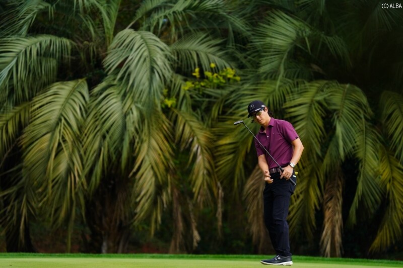 2オン可能な18番パー5では3番ウッドを選択。「フォローだったら、ドライバーで打って左のバンカーを越えるマネジメントをしたかったんです。でも、アゲンストだったので、ドライバーで打つところが一番狭くなる。両サイドのバンカーに入ると、3打目の距離が残る可能性もある。今日は思い切ってスプーンで打って、安定して(3打目に)100ヤードを残せればなという感じでした」。その18番ではピン手前4mにつけて、この日唯一のバーディを奪った。
