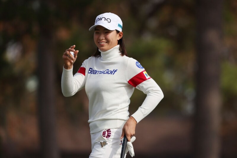 後半に入ってもパーを並べてしのいでいたが、14番でバンカーからの3打目を寄せられず1つスコアをロスした。それでもトータル2アンダー・2位タイのエイミー・オルソン、アマチュアのケイトリン・パップ(ともに米国)ら後続から頭1つ抜け出す展開は続いている。