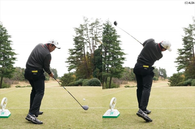 黒宮 そうですね。後ろから見たとき、肩がすさまじくタテに動いていって、フォロースルーで手元が左肩の下に抜けていく。これなら左へのミスを完璧に消せそうです。