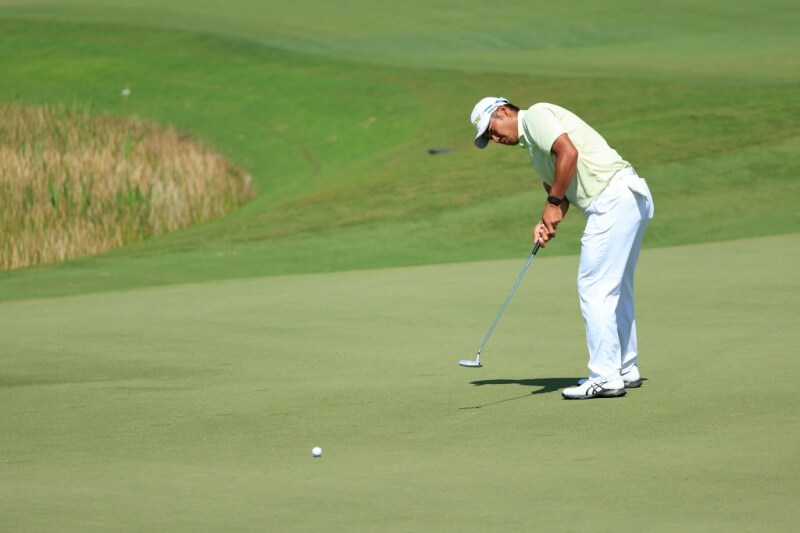 1番から暗雲が立ちこめた。ティショットをバンカーに打ち込むと。アゴが近く、セカンドはそのアゴに当たって前方30ヤードほどに出ただけ。ボギー発進とすると、終始流れをつかめずに1日が終わってしまった。