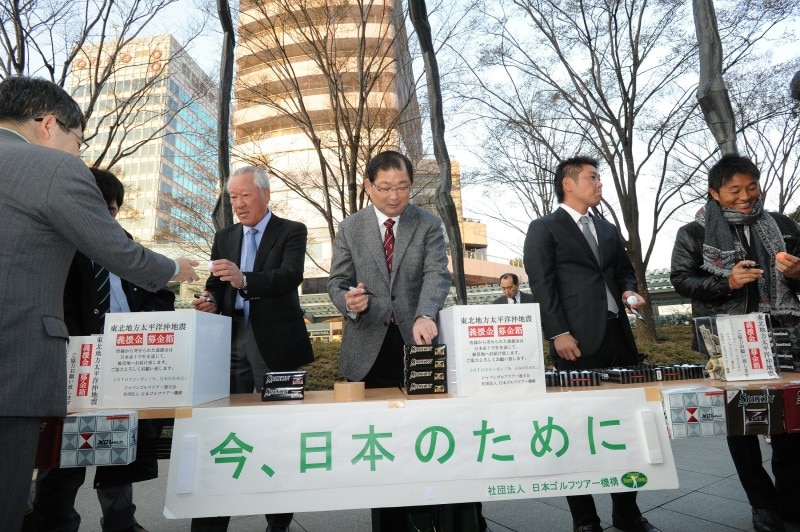 震災から数週間後には、ジャンボこと尾崎将司が千葉県の駅前で街頭募金を実施。「プロスポーツ選手は夢を与えるのが仕事だが今回は事が大きすぎる。そのためには1回でも多く義援金を集めることが大事」と自ら街中に出て協力を呼びかけた。「これまでボランティアは(ツアーなどで)してもらうことが多かった。今回はこちらがやらないと」と、被災地への思いをいち早く行動に移した。