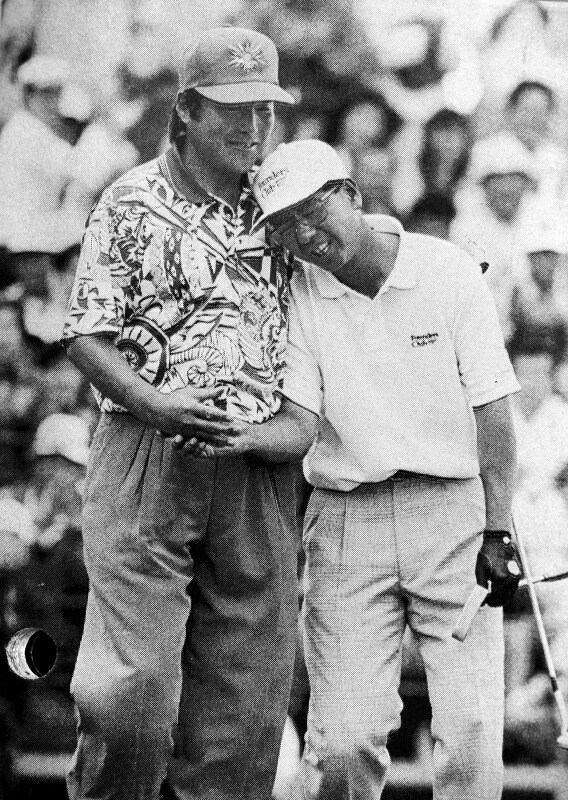 以前、一緒にプレーした大先輩、杉原輝雄に教えられた優勝争いの心得はよく覚えていた。「最終日の残り3ホールまでは(リーダー)ボードを見るな」ということ。しかし「俺のゴルフはもしかして今年で終わりかもしれない、最後かもしれないから」という思いがあってあえて逆らった。ボードは欠かさずチェックし、目の前のジャンボも意識した。