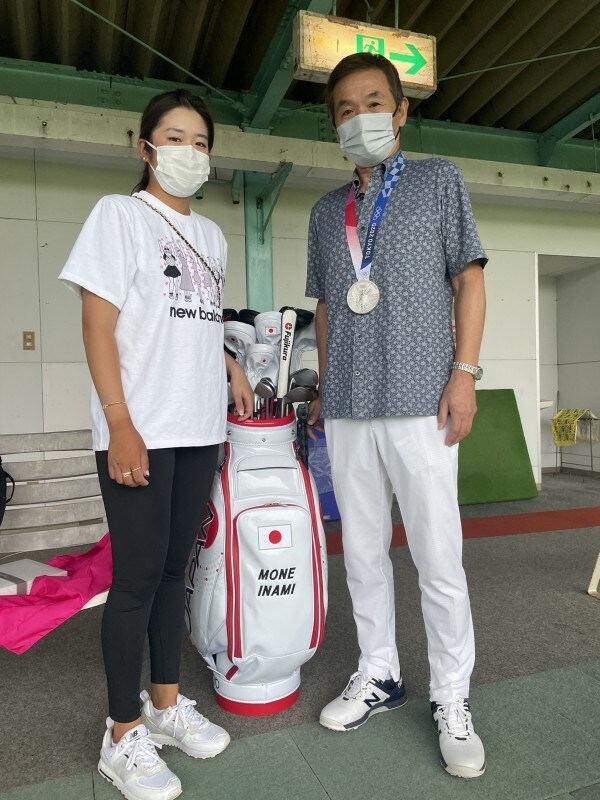 メダルを獲得したのが7日(土)。深夜まで続いた取材対応を終えた稲見は、翌朝には北谷津で朝食を摂り、練習を再開した。その時には銀メダルを手に土屋社長ら、お世話になっている人にあいさつをし、祝福を受けた。「まっさきに来てくれてうれしいですね」。練習場の受付付近には、実際に五輪で使用したキャディバックも展示。稲見のジュニア時代の写真も多く飾られている場所とあって、時の流れを肌で感じることができる。