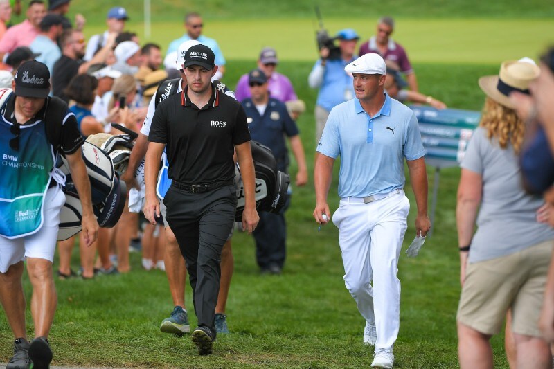 第2ラウンドで驚異の「60」をマークして首位に立っていたブライソン・デシャンボー(米国)は、2イーグル・5バーディ・2ボギー・1ダブルボギーと、きょうも派手なプレーを見せ「67」をマーク。キャントレーと並ぶ首位タイで最終日へ向かう。