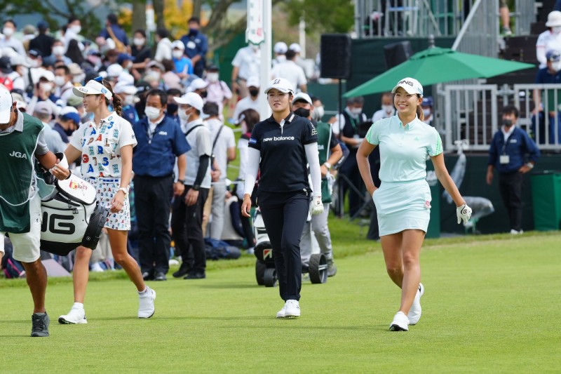 大会初日は主催者の意向なども汲みながら組み合わせが決められるため、人気選手が一緒の組で回ることも多い。実際、今年の「日本女子オープン」予選ラウンド2日間では、この3人が同組でプレー。多くのギャラリーを引き連れて36ホールを回った。富士通レディースが無観客開催なのがもったいないと感じてしまうほど、今をときめく組み合わせだ。