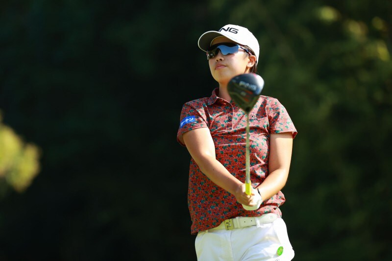 今年の「日本女子アマ」覇者の尾関彩美悠(あみゆ、岡山県作陽高3年)はトータル3アンダー・11位タイで後半をプレーしている。