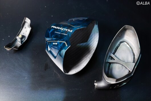この日、都内で行われた新製品発表会には西村優菜が登場。『パラダイム』には業界初となるソールもクラウンもカーボン素材だけで作られた『360°カーボンシャーシ』を採用しており、これを持った西村は、「軽さにビックリしました。おもちゃみたいな感じ」と話す。すべてチタン素材で作るよりも44%軽量化できたことで、余剰重量を利用して、これまでの概念(パラダイム)を打ち破る「飛び」と「やさしさ」を実現。『エピック』や『ローグST』にも使われていたフェースの後ろにある『JAILBREAK』(ジェイルブレイク)は、よりスリムになって『パラダイム』にも採用されている。