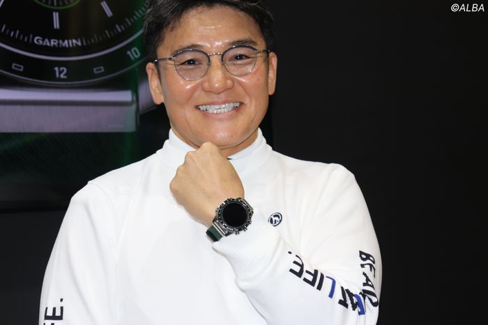 この日、「ガーミン」ブースでは発表・発売に合わせ、トークショーが開催され、丸山茂樹が左手首に『MARQ』コレクションを着けて登場。丸山はゴルファーがGPSスマートウオッチを使うことで、ショットの結果に対する情報がフィードバックされることは上達への強力な手助けになることを力説した。 「自分のショットの飛距離、例えば150ヤードを8番アイアンで打ったら無風なのに届かなかった。次は同じ150ヤードでフォローの風が吹いてて8番で届いたなど、そういった事実を把握し蓄積することが上達には不可欠である」という丸山の説明に会場のファンも思わず納得の様子だった。 この『MARQ』コレクションには、距離だけでなく、ハザードの位置、傾斜、風速・風向き、時差ぼけアドバイザーなど、さまざまな機能が搭載され、ゴルフプレー時以外でも活躍してくれそうだ。 今年のガーミンのキャッチコピーである「ガーミンで勝つ〜最新のテクノロジーでベストスコア更新をサポート〜」をテーマにトークショーは進行。司会者からは、丸山に対して様々な質問があった中で特に印象に残ったのは、「勝つ」ことにまつわる話題。 ライバルに勝つ、勝ちたい、など、そういう気持ちはありましたか?という問いに、「自分の場合はライバルという存在は特に作らなかったです。あくまでも自分との闘いと考えていました。これはゴルフだけじゃなく、普段の生活でも同じ。ダイエットしようとしてても、ついついたべたくなっちゃうのが人間ていうもんです。欲望との闘いですね(笑)」と答えた丸山。 さらに「でも目標としていた人はいました。その人に少しでも近づくために努力は怠りませんでしたよ」と、続けた丸山。トークの中では、目標としていた人が誰なのか、そこまでの言及はなかったが、レギュラーツアー時代にも度々口にしていた、あの超レジェンドプロのことだろう。 明日11日にはラウンドの予定があるという丸山。早速、「この『MARQ(マーク)』コレクションGPSウオッチを着けてラウンドする」ことを明言。「装着感はとても軽く、スイングに影響もなさそう。いままでアクセサリー類を着けてのプレー経験はあったけど、腕時計を着けた状態でプレーしたことはありませんでした。どんな感じになるか今から楽しみです」と、話していた。