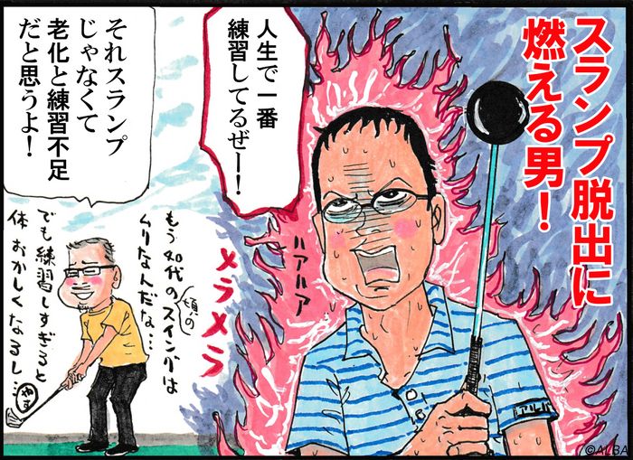 まず大事なのは 1)スランプを乗り越える決心 アマチュアゴルファーのスランプは、重症だとそのまま引退へ繋がる可能性があります。ラウンドをするたんびに100叩き、ひどいと115ぐらいのときがありましたが、そのときはプライベートラウンドだったので、途中からスコアを数えませんでした。 叩いた日の翌日は練習場でひとり反省会をやり、何が悪いんだろうと自問自答します。その練習でさえ、クソボールしか出ないありさま。特に綺麗なシャンクが出てみなさい。しかも3連続とか? 周りからもの凄く注目をされますよ。 こういうのが続くと「そろそろゴルフをやめようかな」と、ふと思ったりして。でも「最近調子悪いから休むわ〜」となると、みんなからのあざけりの声が聞こえそうで嫌です。35年ゴルフをやってきて、下手で休むなんてしょぼいじゃん。もともと下手なんだから、ヘボを認めろと言われそうです。 だからいじめを受けて学校に行きたくなくなる子供の気持ちが、よく分かります。ほんまかいな。なんぼ叩いても絶対ゴルフはやめないし、休まない。絶対復活してやる決意で、リベンジが始まりました。 2)スランプ例を調べる ネットや雑誌でスランプの記事を探して読みました。治し方というよりは、あんな有名な人でもスランプだったというエピソードに助けられました。最近はWBCの村上選手ですか? 打てなくなった4番バッターはマジ辛いです。特に準決勝のメキシコ戦、三振を3回やってからのサヨナラタイムリー。あれはウルウルものです、マジ感動しました。 だからゴルフで100叩きを10回ぐらいするのはチョロいもんです。むしろアマチュアでよかったことを感謝しないと。 ゴルフ関連で驚いたのは、高島早百合選手の長期スランプ話ですか。何かのゴルフ番組のインタビューで、結構長期のスランプで大変だったと語っていました。彼女には陽気な飛ばし屋というイメージしかなくて、絶対悩みはないだろう、そんなアゲアゲのキャラでゴルフ番組を盛り上げる人だと思っていました。 これでどんな凄い人でもスランプはあるんだと理解し、むしろ誰でも一度は通る道と思いました。もちろんレベルの差はありますけど……。 3)まずはやみくもに練習 過去に何度か当たらなくなったことがあるのですが、今回のスランプが一番ひどかったです。何しろ30ヤードのアプローチでシャンクですから。まるでコントですよ。そこをめげずにヒジを寄せて、手を使わずとか、自分でやって短い距離から打つわけです。でも5球も打てばシャンクですから、凄い落ち込みます。 意地で何球もしつこく打ち、ミスショットがさほど出ないところまで自己流で直していく。どんなものかな〜と思ってラウンドに行くと、これが全然ダメで、また叩いてしまう。するとまた泣きながら練習場で打ち込みの繰り返しでした。 ドライバーなどの長いクラブは、そこそこ打てましたが、グリーン手前80ヤードぐらいから叩き出すのがお約束。なんだかなあ〜。 たぶん長いゴルフ人生の中で一番練習をしたんじゃないでしょうか。それは近所にある練習場が3月で閉鎖してしまったからです。その後練習するとなると、ちょっと遠い所へ行かないといけない。だから閉まる前に腕前を戻しておかないと大変なことになると分かったからです。 4)次第に光明が見えて来た なんぼ下手でも何十回と練習場で打っているうちに、なんとなくコツを得て来ます。まずは得意クラブで振り回し、やがて苦手クラブへと移行する。あるいは苦手な番手の中でも、複数あるクラブの中で比較的打てるクラブを選んで打ち込むとかね。もちろんスタンスやボールの位置、グリップ、スイングなど少しずつ変えながら手さぐりでヒットポイントを探しました。 練習場でだいたいの球が打てて来て、いざコースに行くと、スコアはやっと100を切るぐらいです。やや復活ですが、何かが足りない。コースではいったい何が起きているのでしょうか。 6)トラブルはコースで起きている 長年ゴルフをやっていると、危険を感じるセンサーが発動することがよくあります。残り150ヤード、UTの5番をフルショットすれば届く距離。けどクラブを握って構えるとセンサーが発動して、これは当たらないぞというシグナルを出すわけです。でも練習場じゃこれぐらい楽に打ってるじゃんと思って振るや、ぼてぼてのダフリ。 ライをよく見ると、左足下がりになっていて微妙に打ちづらい。それを自分の危険センサーが感知し、信号を出したのです。正解はUTの4番を軽く振るでした。 とまあこのように「現場勘」を養っていくのも大事です。つまり練習ばかりしていると、現場の対応力が欠如してしまうのです。通常の練習場じゃ、左足下がりや右足下がりなんて練習できませんからね。 結局、スイングが中途半端ながらもコースに行き、現場での対応力も鍛えることに、あ〜しんど。 7)現場力の最たるものはバンカー バンカーショットは苦手です。それはバンカーの