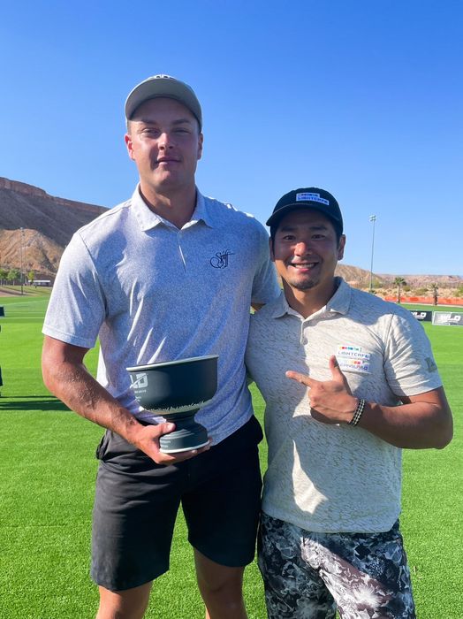 新型コロナウイルス感染拡大の影響で、19年を最後にWLDツアーは3年間開催されていなかったが、昨年まで行われていたプロフェッショナル・ロング・ドライバー協会(PLDA)を吸収する形で4年ぶりに復活。大会前に同じ会場で行われた「ワールドチャンピオンシップ・ドラコン選手権」の予選会では、三隅は1位通過。10月にアトランタで行われるドラコン世界大会への切符を掴んだ。 実は、WLDツアーに三隅は3月にも出場している。「そのときはスピンコントロールに苦しんで」予選会で権利を得られず、大会も初戦で姿を消した。「僕はもともとカットスイングだったので、とにかく叩いて叩いてスピードを上げることしか考えてなかったんです」。三隅のスイングではWLDの公認球であるブリヂストンゴルフの『e9』は、スピン量が増えすぎて飛ばなかった。 帰国してからすぐさまボールを研究してスイング改造に着手し、「アタックアングルがマイナスだったのが、プラス8度くらいになりました」と、ダウンブロー気味だった入射角を、アッパーブローへとチェンジ。結果として、「最初3500回転くらいだったのが2000回転くらいになりました。クラブは替えていません」と、スピン量を減らして吹け上がりを抑えることに成功した。 スイングイメージについては「前は上から叩いてアウトサイドから入ってきていたのが、今はインサイドからカチ上げるイメージですね。そこでフェースが開くと右にペラペラと弱い球になってしまうので、フェースを閉じて、右に打ち出して左に帰ってくるドローボールを打っています」と話す。 フェードからドローへのスイング改造は、スピン量を減らすことを一番の目的としていたが、思わぬ副産物もあった。「大会では弾道測定器が各打席に設置してあって、データが全部見られるのですが、僕のヘッドスピードが他の選手に比べて速いんですよ。ボールのスピードも劣ってない」とヘッドスピード、ボールスピードともにアップ。大会では自己最速の時速157マイルをマークした。これは70m/s以上に相当する。三隅のヘッドスピードは今回優勝したオーストラリアの新星、22歳のセバスチャン・トワデルに次ぐ数字だった。 男性の一般ゴルファーが40m/s前後、男子ツアープロの飛ばし屋が50 m/sを超えるくらいと考えると、かなりのスピードだというのがわかる。 ベスト32からベスト16を決める試合では、三隅は3位通過している。「ヘッドスピードだけでいえば、ドラコン世界ランキング1位のカイル・バークシャーよりも速かった。どうやって優勝カップを持って帰ろうかって心配しているくらいでした(笑)。そんなに甘くなかったですけどね。いままで本当に手が届かない存在でしたけど、しっかりその辺の数字を打ち続ければ、いけるんじゃないかと感じました。今後の自分に期待したいですね」。大会では自己最長距離417ヤードを大きく更新する446ヤードを記録し、大きな手応えを得る一週間となった。 今後は8月のLDJ日本大会で4連覇を目指しつつ、10月のドラコン世界大会に照準を合わせていく。一番の目標だった世界大会への切符を掴み、WLDツアーへの参戦予定は今のところないが、「スイングに慣れれば、もっと速くなる予感はある。せっかく乗ってきている状態なので、世界大会までにあと数回行けたらという思いはあります」と考えている。35歳の挑戦はまだまだ続く。