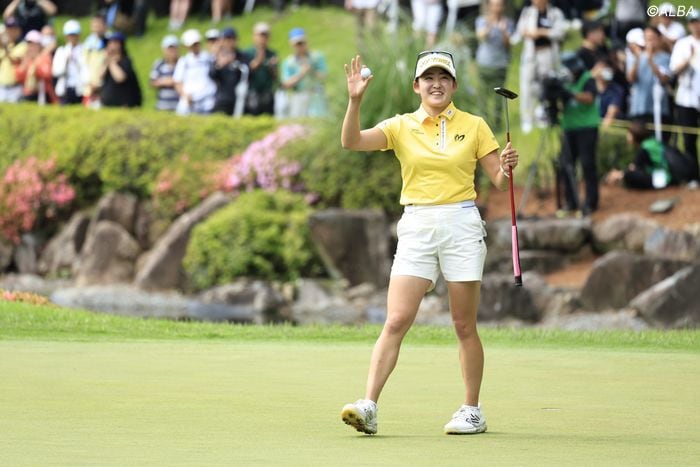 「大丈夫、自分のゴルフをするだけと言い聞かせた」と気持ちを切り替えようとしながら、12番パー5で2打目を放ったあと、ふと気がついた。「自分で自分を追い込んでいる」。“元世界No.1”がじわりじわりと詰め寄ってくるプレッシャーから、自分の顔が徐々に険しくなっていることを知った。 ここで自分の“モットー”を思い出す。普段から意識し、常に言葉でも表しているのが『見ている人をワクワクさせるプレー』。顔を上げて周りを見渡せば、たくさんのギャラリーが岩井に声援を送っている。「見ている人の歓声が聞きたい。ファンのみなさんのためにゴルフをしようと思った」と、ここで思考を変える。自身のショットがピタリとついてギャラリーが沸く、というイメージをつくるようにした。 するとそのイメージ通り、12番の残り55ヤードからの3打目を2.5メートルにつけてバーディ。ギャラリーの声援を全身に浴びると、それを力に変えるようにギアを入れ、14番もカップ50センチにピタリとつけて奪った。 16番パー3では池越えすぐのところにピンが切られていたが、「ここでナイスショットできたらかっこいい」と放ったティショットを2メートルにつけるスーパーショットでバーディ。ジエとの差をスタート時の5打に戻し、一気に振り切った。 六甲名物・18番でウイニングパットを沈め、トータル23アンダーで終えるとひときわ大きな歓声を聞いた。今季2勝目(通算4勝目)はトーナメントレコードを更新しただけでなく、自身初の“完全優勝”。「初の経験だし、エネルギーを使って4日間やってきたので、頑張ってよかった」とうれしさはひとしおだ。 表彰式では「キラキラしているし、憧れの人」と話す、大会アンバサダーの宮里藍からチャンピオンブレザーが贈られた。サントリーブル―のジャケットに黄色のウエアが映え、途中まで険しかった顔は晴れやかな笑顔へと変わっていた。 これで8月10日に開幕する海外メジャー「AIG女子オープン」(全英)の出場権も獲得。姉の明愛とともに、ツインズでの出場を叶えた。「出られることはうれしいし、宮里藍さんのように活躍したいという気持ちがもっと強くなりました」と話す20歳。日本だけでなく、世界中のギャラリーを沸かせるイメージもできている。(文・笠井あかり)