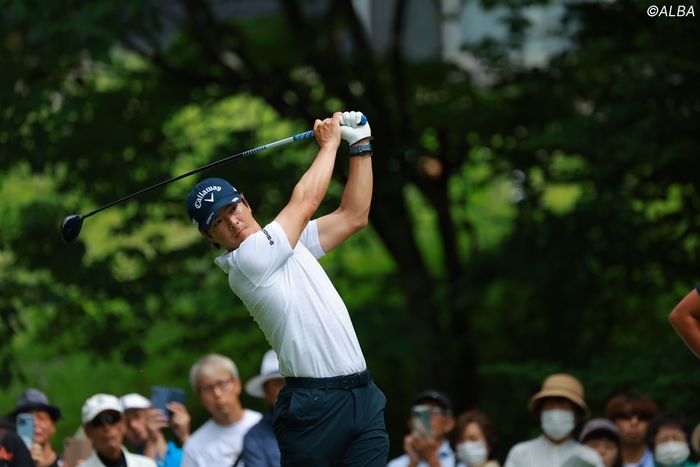 前半のインコースは3バーディ・1ボギー。後半では6バーディを奪う猛攻をしかけて「64」。初日以来となる60台の好スコアでファイナルラウンドを終えた。トータル23アンダー・首位タイに選手会長の谷原秀人と20歳の長野泰雅。1打差3位タイには中島啓太、植竹勇太が続いている。