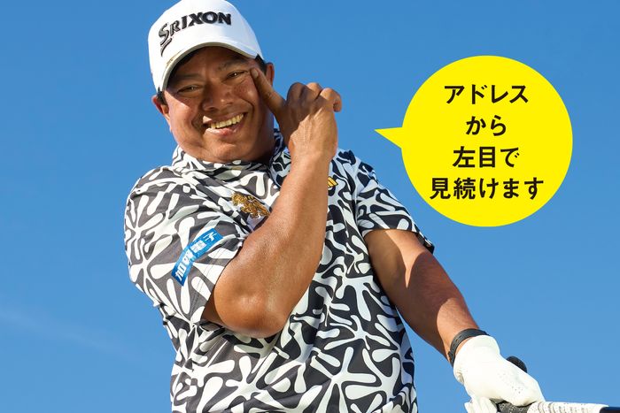 ポイントはスイング中の視線の取り方。アドレスからボールを左目で見て、その視線のままスイングすると、ビハインド・ザ・ボールの形をキープでき、オンプレーンで下ろせるようになります。反対にボールを右目で見ると、顔が左に流れてカット打ちになってしまいます。もうひとつ大事なのが、胸を大きく回すことですね。テークバックで右に、フォローで左に胸を回すと、軸を保ちやすくなるんです。また、胸を大きく回すと手先で合わせる動きが防げるので、ボールがちゃんとつかまってきます。ボクの6連勝スイング、試してみて下さい!プラヤド・マークセン1966年生まれ、タイ出身。2001年に日本ツアー参戦。08年マスターズ出場。22年は史上初の6連勝で4度目のシニア賞金王に。シニア最多の21勝。SINGHA所属