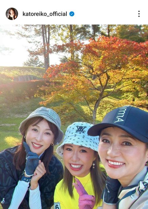 タレントのかとうれいこが自身のインスタグラムを更新。ゴルフ仲間としても親しいタレントの橋本志穂、ゴルフのインスタグラマーとして人気のゆかちんまると3人で楽しくラウンドしたことを公開した。