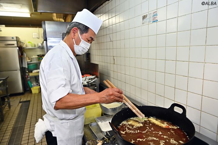 ゴルファーにとって、ハーフターンで食べるランチは楽しみの一つ。注文してからアッという間に配膳されるのは驚きだが、ランチの提供にどんな苦労があるのか、レストランの料理長に話を聞いた。ドライブインの厨房で料理人を始めたという赤川義春さん。料理人歴50年以上のベテランで、ドライブインで料理人をスタートしたという。