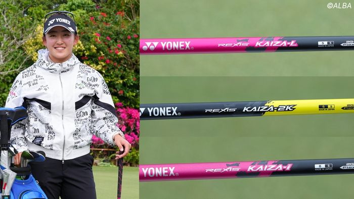 ◇ ◇ ◇ドライバーの『レクシスカイザL』からアイアンの『レクシスカイザ i』まで、シャフトを先調子でそろえている点が特徴です。双子でも千怜プロと、明愛プロはスイングが違います。千怜プロの持ち球はフェード。絶好調時の有村智恵プロや、堀奈津佳プロみたいなイメージで、その場で回ってボディターンで打ちます。トップがコンパクトで切り返しが早いため、手元が硬い先調子のシャフトが合うのでしょう。一方、明愛プロはトップが深く、大きなタメを作ってヘッドをぶつけるイメージのスイングですね。ゆったり切り返すため、中調子のシャフトを愛用するのだと思います。シャフトの統一感があるセッティングは、非常に参考にしたいところ。だから成績が出ているとも言えますね。アイアンはカーボンシャフトを使っているのが特徴。80グラム台の重量帯で先調子系のスチールシャフトが少ないため、この『レクシスカイザ i』を使っているのでしょう。全体が先調子でまとめられていますが、ウェッジのシャフトだけ先が動きすぎない中調子の『N.S.PRO 950GH neo』を使用している点は面白いですね。アプローチだけスイングが違うものと理解した上手いセッティングだと思います。また、キャリーを出しにくくなる4番アイアンの位置に、ロフトが立っていても高さを出しやすい飛び系の6番アイアンを入れています。これもアイアンセットと同じく『レクシスカイザ i』を装着して、振り心地をそろえている。直ドラを打つなど、ボールを上から打てる技術があるので、アイアンのほうがユーティリティよりも打ちやすいのだと思いますね。【岩井千怜のクラブセッティング】1W:ヨネックス EZONE GT TYPE S(9度/レクシスカイザL 5S、45.25?)3,5W:ヨネックス EZONE GT(15,18度/レクシスカイザ2K 5S)6I(4I相当):ヨネックス EZONE GT(23度/レクシスカイザ i 8S)5I〜PW:ヨネックス EZONE CB511(レクシスカイザ i 8S)50,54,58度:ヨネックス EZONE W 501(N.S.PRO 950GH neo S)PT:オデッセイ WHITE HOT BLACK #5 CSBALL:スリクソン Z-STAR XV■岩井千怜いわい・ちさと/2002年生まれ、埼玉県出身。2022年、23年とツアーで2勝ずつをマーク。今季も「ダイキンオーキッドレディス」で5勝目を挙げて、開幕ダッシュに成功している。岩井明愛は双子の姉。Honda所属■吉田 智よしだ・さとし/クラブメーカーを経て「プレミアム ゴルフスタジオ」(渋谷区)でフィッターを務める。アマチュアだけでなく多くのプロからも信頼され、これまでに女子ツアー5勝、ステップ・アップ・ツアー1勝、シニアツアー1勝をサポートしている◇ ◇ ◇●女子プロのクラブセッティングにはアマチュアに役立つヒントが満載。関連記事【10勝を挙げた小祝さくらのシャフトはなぜ全部元調子系なの?】をチェックして、スコアアップにつなげよう。