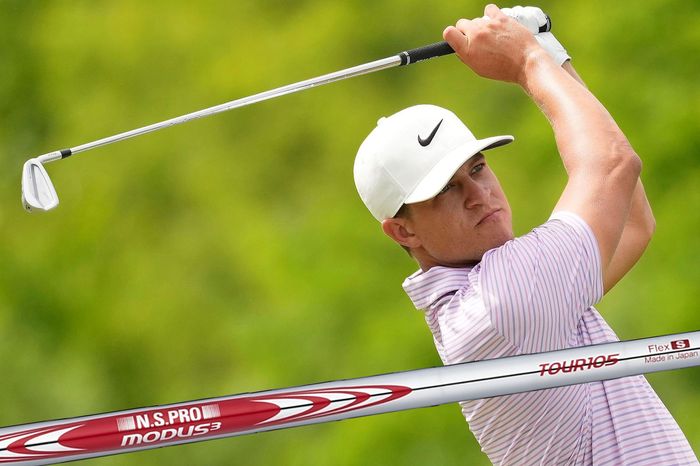 昨季まで『KBS Tour C-Taper 130』(X)を使用していたが、現在のシャフトは日本シャフト『N.S.PRO モーダス?TOUR 105』(S)をPING『ブループリントS』に入れている。最速級の選手が、我々アマチュアにも馴染みのある『モーダス105』(S)でも問題がないのか? 日本シャフトのPGAツアー担当は、変更経緯をこう明かす。 ■目的はヘッドの居場所を感じること 「PINGのツアー担当と、スイングコーチ(ショーン・フォーリー)と話す中、キャメロンが『もっとスイング中にヘッドの存在を感じ取れるようにしたい』と求めていました。彼のスピードからすれば、より重く硬いシャフトが適正ですが、あのクラスのスピードやフィジカルをもってしても安定したパフォーマンスを求めるのは容易ではありませんでした。(常に100%のスイングを求められる)当初は『TOUR120』(X)からテストしてフィーリングも非常に良かったのですが、『120S』?『105』と段階的にテストを重ねた結果、フィーリングと弾道データがベストに近かったのが『105S』だったのです」(日本シャフトPGAツアー担当者) 以前からPGAツアーでは、軽量の『モーダス105』(X)を長めに組み、アイアンの落下角を大きくする選手が20人強いた。が、最速級の選手にとって『アンダースペック過ぎないのか?』同社広報の栗原一郎氏は「フィッティング手法の一つとしてアリ」と説明する。 ■剛性感は『105S』でも問題はない 「105Sそのものは、あのスピード帯の選手にとっては【軽く、柔らかい】です。彼がSなら『やはり軽硬のシャフトなんだ』と思われがちですが、決してそんなことはなく、あくまでプレーヤーニーズを満たすためのフィッティング手法の一つで『彼のようなケースにも使用できるシャフトである』という証明になるかと思います。 彼のようなケースにも対応出来るだけの剛性感は持たせており、近い重量帯の『GH』や『neo』と同列で比較出来るスペックのシャフトではないです。ハイスピード帯の人によりヘッドの効きやしなり感を持たせるため、軽く、柔らかいシャフトを当てはめる場合があり、今回はこれに該当する選択だと考えられます」(栗原氏) アマチュアゴルファーで『105S』を愛用する人のドライバーのヘッドスピードは、大体41〜44m/sの印象だが、それより10m/s以上速いスピード域でも剛性に問題は無いという。 ■“軽いシャフトを試す”のが米国流 「実は【軽い105】というのがミソで、『単純にフレックスを下げる』としなり量の増加で“鈍重な感覚”が強くなってしまい、トウダウンが増えるなどの弊害でスイング中のヘッドコントロールが困難になりがちです。これを解消するため【一つ軽いものを試す】というのは、特にPGAツアーの選手は当たり前にやります。この辺りは、日本人選手とは大きく事情が違うかもしれません。 これは一般アマチュアにも当てはまることで、現状よりもう少しクラブコントロールとヘッドの利きを強めたい場合、例えば『120S』のユーザーはヘッドに鉛で荷重するとかではなく、『105R』をお試し頂くなどは、非常に有効な方法です。同じフレックスで軽くすると、今度は軽さが際立ってしまってストレスになることも多く、この辺りのフィッティングは本当に難しいですね」(同) 前述のPGAツアー担当者によれば「少しオーバースイングを抑えてクラブコントロールを向上させたいというコーチ(ショーン・フォーリー)の思惑にもハマったみたい」とのこと。スペックの“数字合わせ”より「結果重視」な合理的考えによる膨大なフィッティングの経験値がPGAツアーの現場にはあるようだ。 【キャメロン・チャンプの使用ギア】1W:ピンG430LST(10.5°テンセイ1Kレッド60TX 先詰1? 45.25? D3)5W:ピンG430MAX(18°テンセイ1Kレッド80TX 先詰2? D3)4I:ピンi530(N.S.PRO モーダス? TOUR 105S)4I〜PW:ピンBlueprint S(N.S.PRO モーダス? TOUR 105S)A,S,LW:ピンs159(50S,56H,60B N.S.PRO モーダス? TOUR 115Wedge)PT:ピンPING 2021 PUTTER Tyne 4