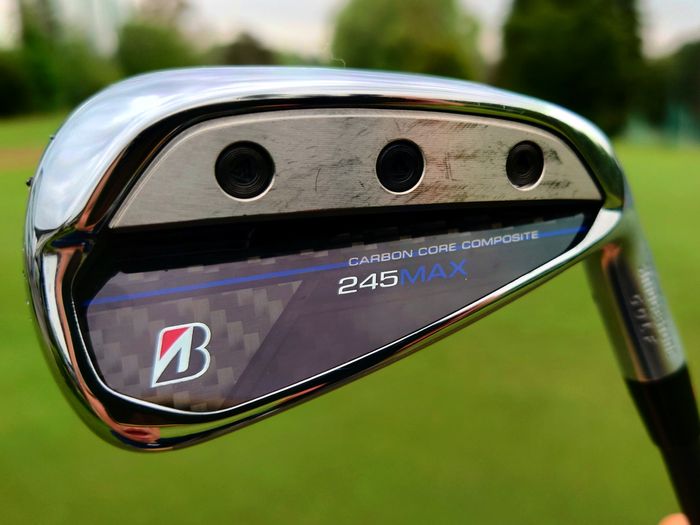 ◇【注目ポイント】ブリヂストンスポーツは、2024年4月5日に『245MAX』アイアンを発売。近年のブリヂストンスポーツには、アイアンの名称に一定の決まりがあります。『245MAX』に当てはめてみると、頭の二桁の「24」は2024年モデルという意味で、その後ろの「5」がタイプの区分になります。「0」がマッスルバック、「1」「2」はツアーアイアンのセミキャビティとキャビティ、「3」が一般のゴルファー用で、ぶっ飛び系アイアンなどにつけられていました。「5」は、初めての分類です。よりやさしいアイアン、ということのようです。“カーボンで実現する【MAXやさしい】高機能アイアン”というコピーです。見た目が、ガラッと変わっています。ポケットキャビティで、色々な素材を複合しているように主張しているのです。注目すべきテクノロジーの一番目は、「カーボン コア コンポジット」。高強度HSメタル「X37」を採用したフェースを1.85mmまで薄くして、補強するように裏面にカーボンを貼り付けている構造です。高反発は飛距離性能に直結します。バックフェースのビスは、タングステンウェイトを止めるものです。このウェイトで、低重心と後方重心を両立させています。三つのビスの真ん中は、「サスペンションコア」。裏からフェースを押す構造になっています。フェースの広い範囲が高反発エリアになる機能は、すでに実績があります。ここで、情報通な人なら疑問があると思います。ブリヂストンスポーツは、昨年の秋にぶっ飛び系のアイアン『233HF アイアン』を発売しているのです。1年もしないで、同じようなアイアンを出すのは、どうしてなのか?僕も、同じように思いました。ちなみに、7番アイアンのロフトは、『233HF アイアン』が28度で、新しい『245MAX』は27度です。テクノロジーを比較してみてわかります。『233HF アイアン』は中空構造で出来ることを極めたクラブになっていて、新しい『245MAX』はキャビティ構造で出来ることを極めた同じベクトルにありながら違うアイアンということのようです。両者を見比べていると、『245MAX』のヘッドのほうがより大きく見えます。やさしさのレベルを一段上げたということなのかもしれないと考えました。『MAX』ブームですが、やさしさのレベルのMAXですので、情報を統合すると納得できます。『245MAX』は、興味深いアイアンです。試打した日は、曇で、気温は16℃〜22℃。微風でした。使用したボールは、使い慣れていて、クラブの影響に集中できる『TOUR B X』です。