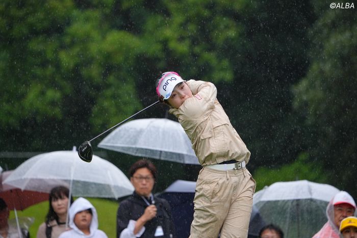 荒天を考慮し、セカンドカットを実施したうえで行われた最終日はスタート時間も当初予定されていた午前7時から午前6時30分に前倒しされた。イレギュラーなできごとのなか「特に普段と変わらず臨めていたと思うんですけど…」と平静を保っていたつもりだが、気持ちとは裏腹に普段通りのプレーをさせてはもらえなかった。「チャンスのパー5でボギーが多かった。あまりいい流れに持っていけなかった」。パー5はスタートの1番でボギーを喫すると、4番でもスコアを落としてしまう。5番パー4でバーディを奪い仕切り直しといきたかったが、その後もボギーの連鎖は止まらない。「4番くらいからですかね、そこで落としてしまったのでもったいなかった」。悪い流れに拍車をかけた4番がひとつのターニングポイントになってしまった。和白に降りしきった大雨も、佐久間の敵として立ちはだかった。「雨で飛ばなかった。(球が)滑らないように気をつけながらやっていたんですけど大変でした」。さらに「(天気が)荒れてるなら耐えればいい思っていたんですけど、自分が崩れてしまったので、そこは反省かなと思います」。トップ10入りも逃すトータル2アンダー・13位タイという結果を噛みしめた。同じ条件のなか、スコアを伸ばした同組の岩井千怜と山下美夢有の後塵を拝してしまったが、それでも「また来週っ(笑)」と最後に笑顔を見せた佐久間。何度も悔し涙を流してきたが、その表情を見ると雪辱を果たすチャンスはすぐにやって来そうだ。(文・齊藤啓介)