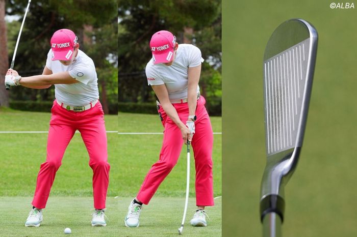 ラウンドソールを生かし、緩やかなダウンブローで打つ岩井明愛のアイアン【連続写真】