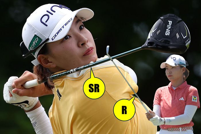 先週のオープンウィークに試した「柔らかシャフト」を大事なメジャーの舞台「全米女子オープン」でいきなり本番投入し、単独2位という最高の結果を手にした渋野日向子。この選択は提供したフジクラの担当者にとっても「驚きだった」と振り返る。きっかけは、先月初めの一報だったそう。 「先月頭くらいにマネージャーさんから【シャフトを送ってほしい】と相談があり、現状の確認とこれまでの好みを考慮して、アイアンは『MCI80』のRとS、ウッドは『EVO6』や『24 VENTUS BLUE』などをお送りしました。先週のオープンウィークに試した結果、【アイアンの『MCI80-R』がデータ、フィーリング共にすごく良い】と連絡があり、今週の会場に追加のシャフトをお送りしました。火曜日までウッドは他のモデルを試していましたが、火曜日に『SPEEDER NX GREEN 50-SR』を試してもらい、非常にハマったようです」(同社・飯田浩治氏) つまり、先週の時点でアイアンシャフトの変更は決定的だったが、今週は会場入りするまで、「ドライバーをどうするか未確定」だったのだ。渋野自身、2日目を終え「柔らかシャフト」への変更意図をこう話していた。 「先週まで使っていたシャフトが若干硬くて、右に出すドローが出なかった。どうしようかなと思った時に、【今まで使っていたちょっと柔らかめで返ってくるようなシャフトに戻そう】と思った。(変更してから)ドライバーが気持ちよく振れている感じがある。ラフに外したのは16番のスプーンだけなんですよ。ドライバーで打てば良かった。狭いけどさ〜(笑)」(渋野) このコメントはドライバーシャフトについてだが、持ち球のドローの打ちやすさ的に、少し柔らかめの方が良かったよう。プロ入りから歴代フジクラ製シャフトを使ってきたため、同社の飯田氏もこの選択は「意外だった」そう。 「ずっと50-Sを使用されていたので、基本的にはSを提案していたのですが、【全体的に柔らかく】となったようです。アイアンもこれまで『80-S』か『80-R』の硬め番手ずらしだったので。(変更前の)月曜日のスイング動画も見ましたが、少しクラブに振られている感じがあったので、【スイングウェイトを軽くしたのも良かった】と思います。火曜日の練習ラウンドでドライバーも非常に良くなったと聞き、少しでも調子が上向くきっかけになれば良いなと思っておりましたが、こんなに早く結果が出て、驚きと嬉しさが入り混じっております」(飯田氏) 渋野が2019年に「AIG 全英女子オープン」を制した際のドライバーは、スピーダー569『EVO6』の(SR)を44.75インチで使用しており、アイアンにも『MCI80』(R)のシブコ専用ブルー塗装のモノを使用していた。というわけで、いきなり確変して見えるが、ドライバーの「SR」もアイアンの「R」も、元々振りやすかったしなりに近いモノへ“原点回帰しただけ”と言えるのかもしれない。(編集部M・K)